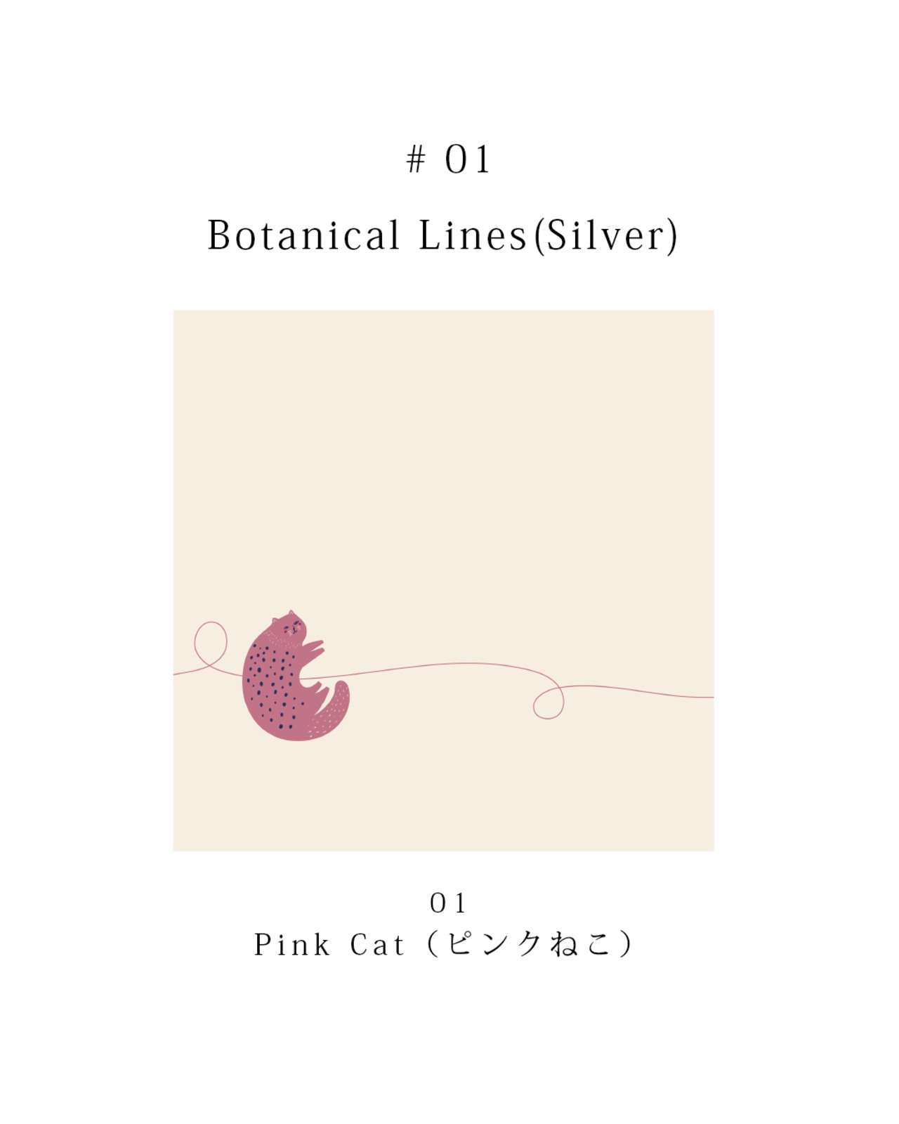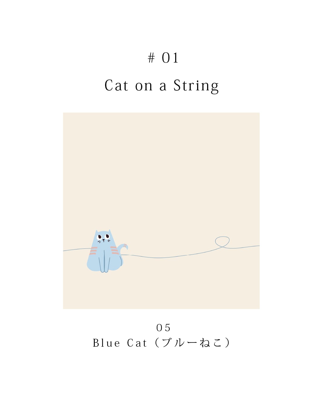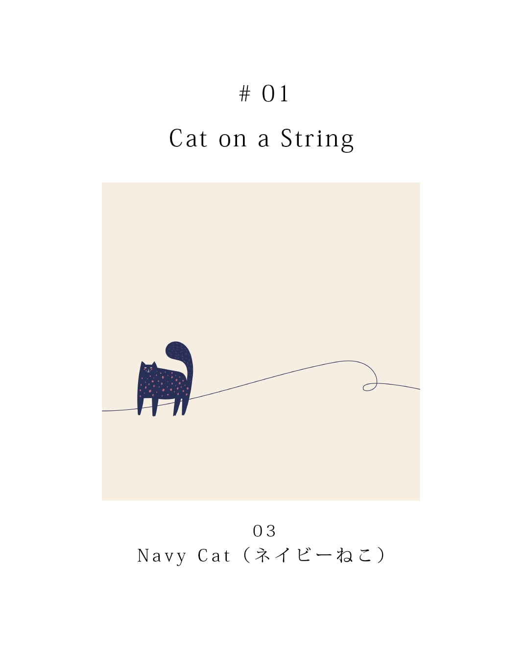 線にぶら下がる小さな猫たちをモチーフにした、やさしく余白のあるシリーズ。