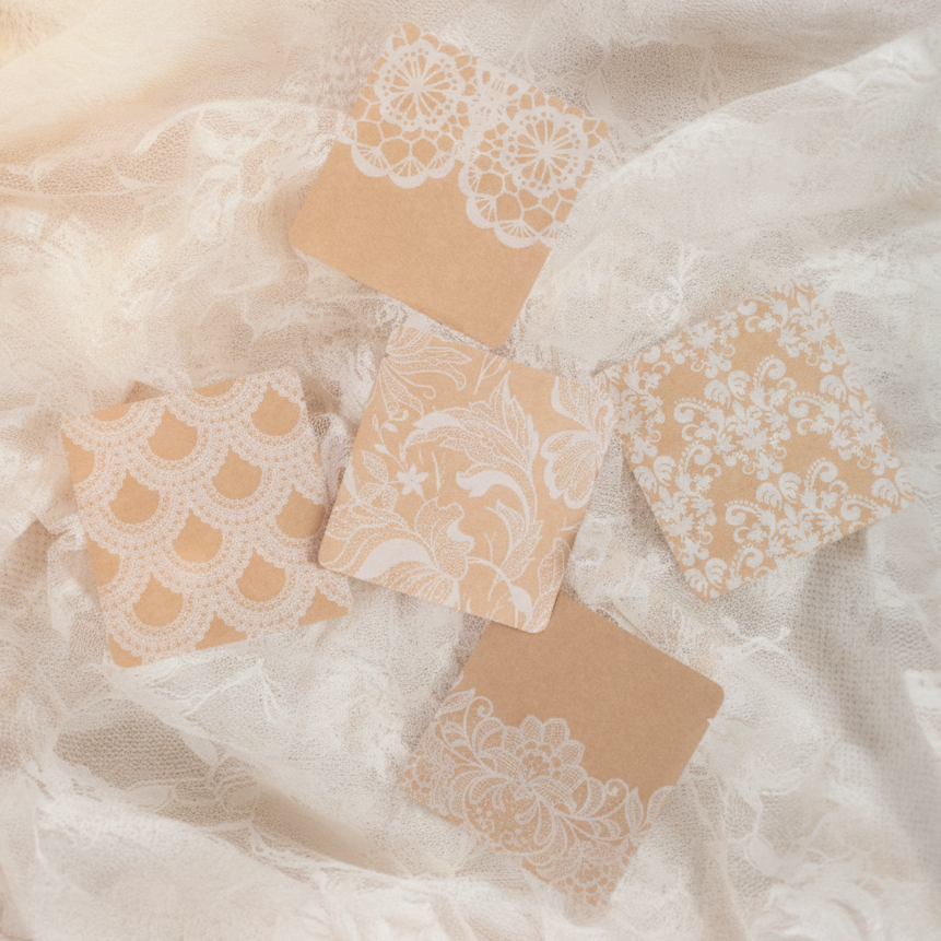クラフト紙の温もりを、レースのような繊細な線で包み込んだシリーズ。