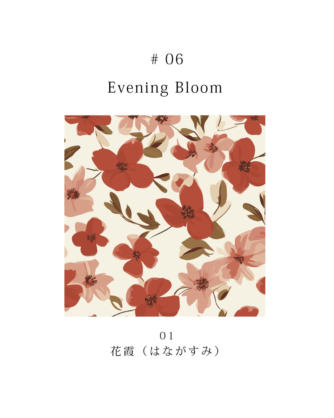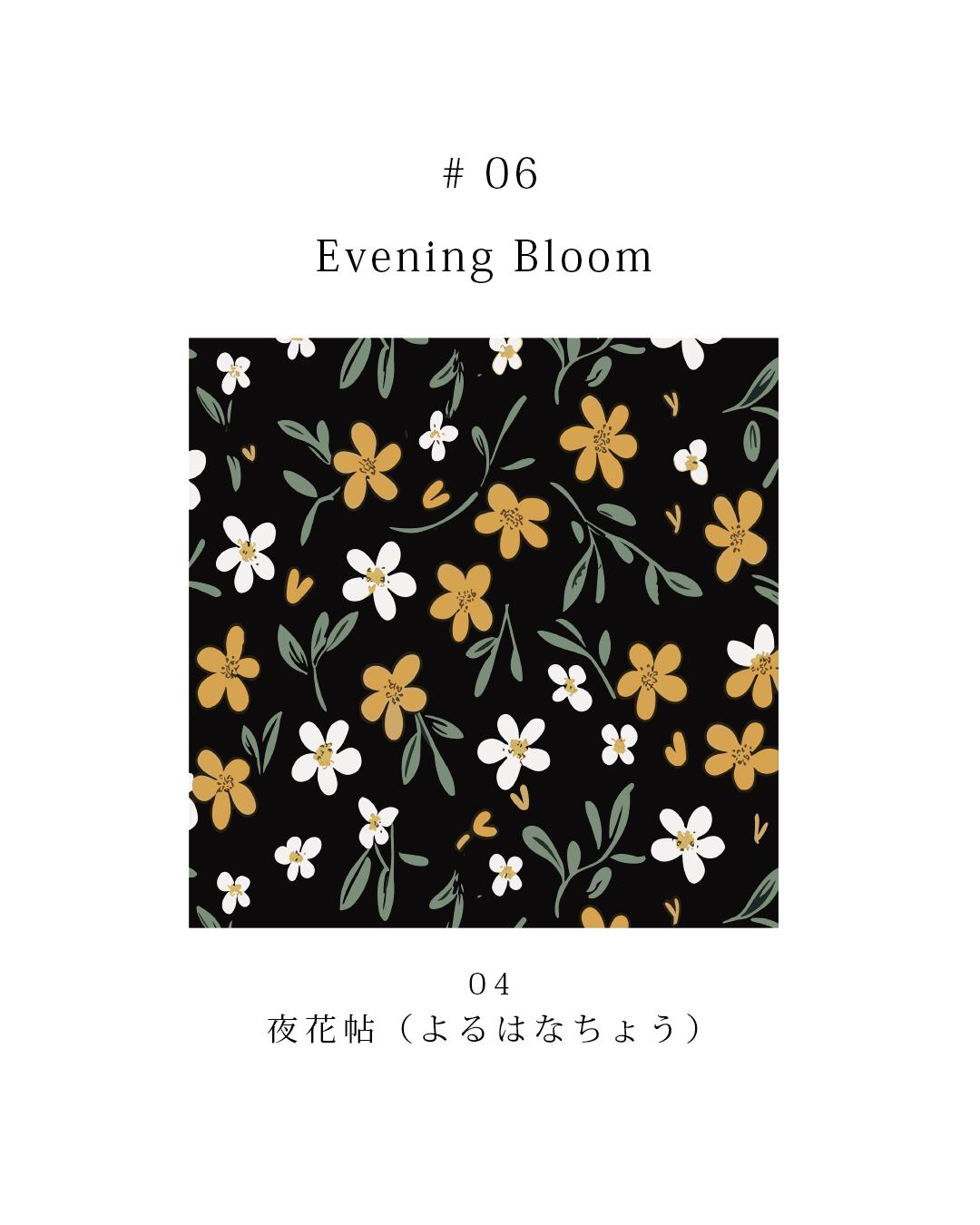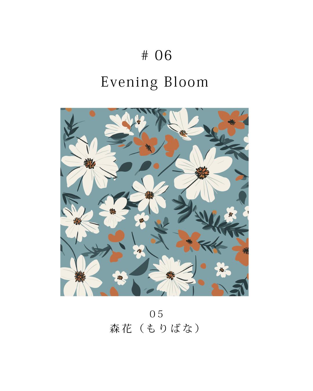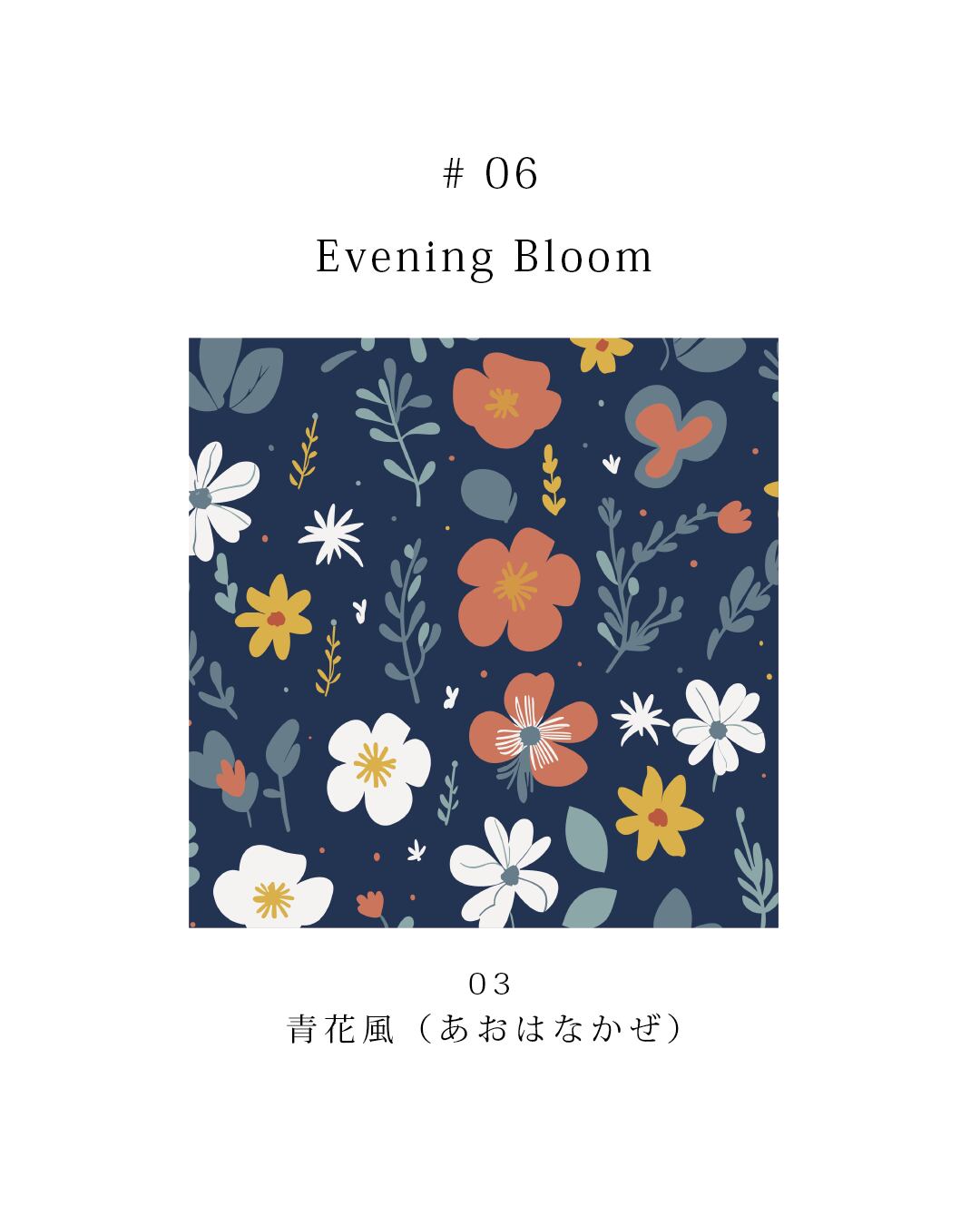 深い色面の上に、花と葉のかたちを端正に重ねた、大人のためのフローラルシリーズです。